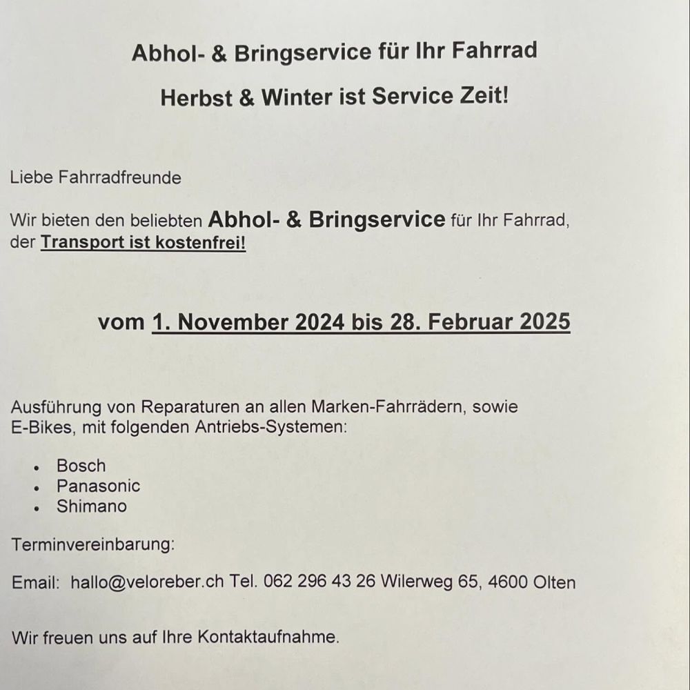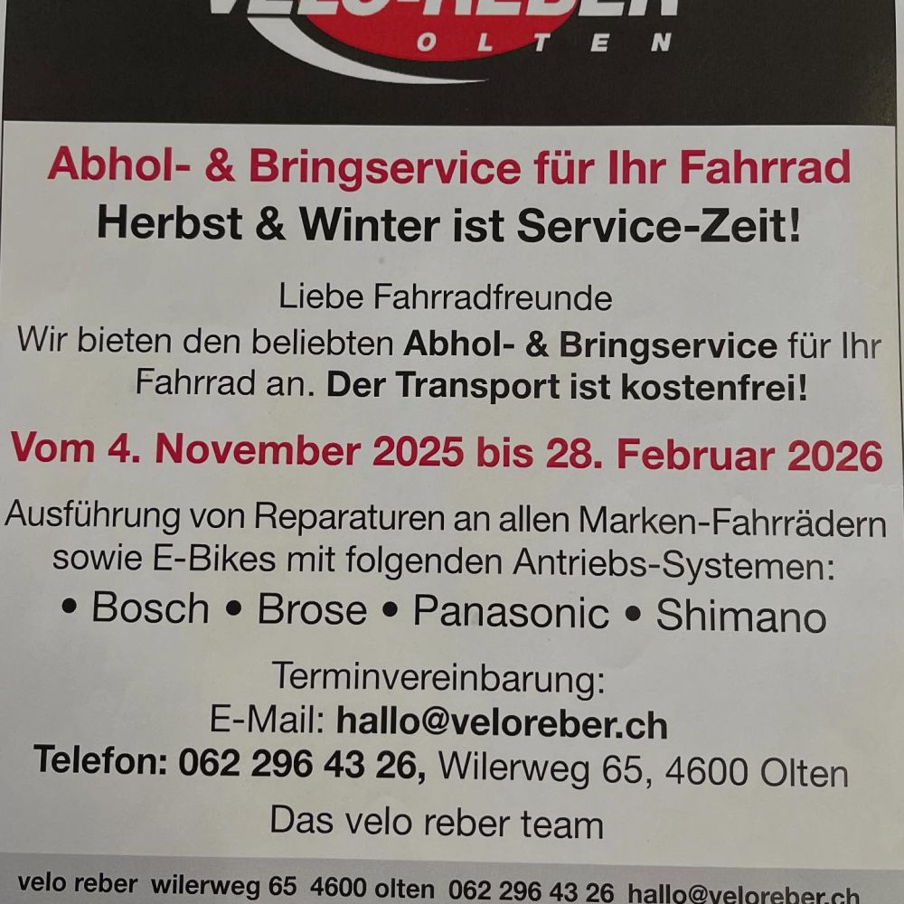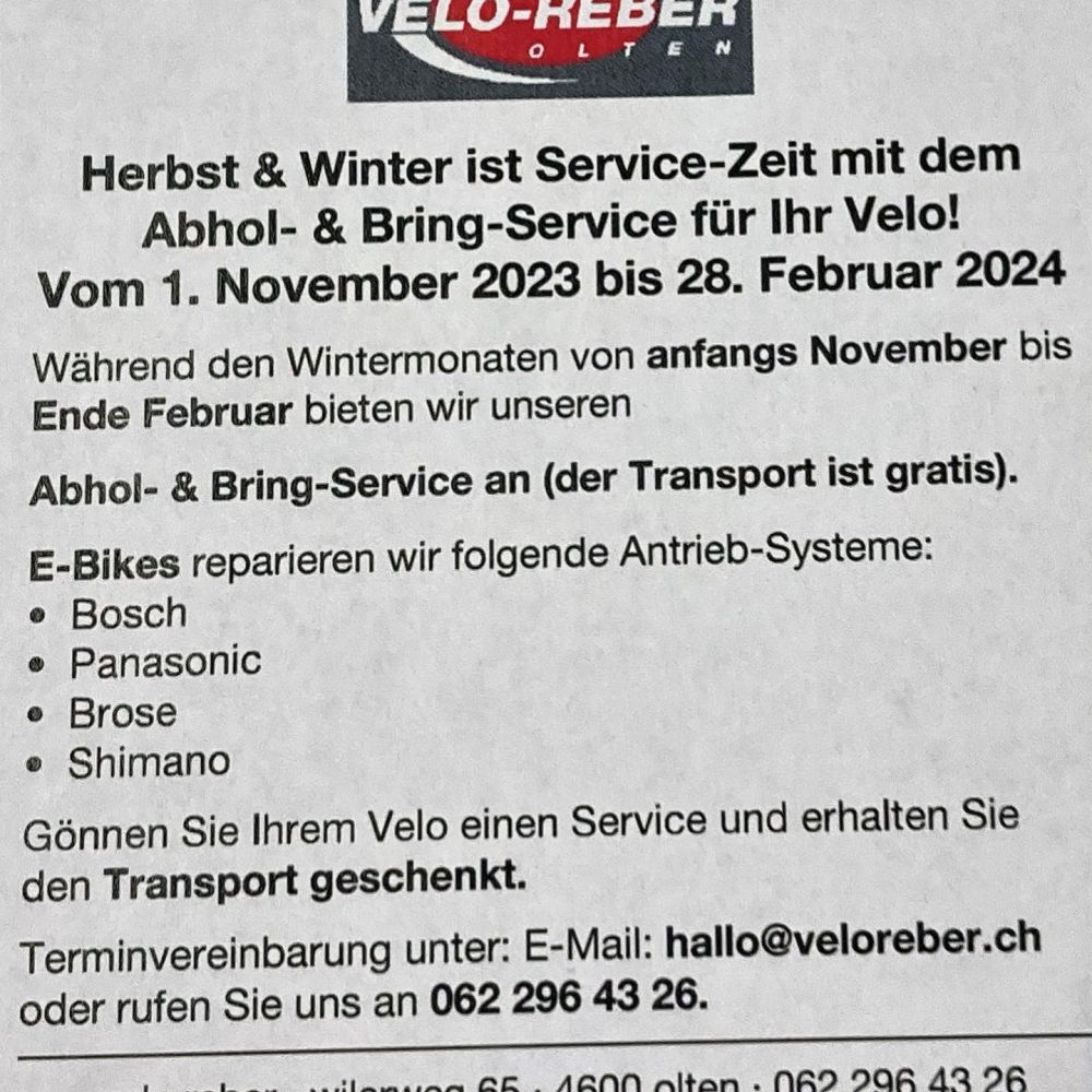 Bei Velo Reber in Olten finden Sie alles rund um das Velo. Seit mehr als 50 Jahren kümmern wir uns um Rennvelos, Kindervelos, Touren-Bikes, E-Bikes, City-Bikes und vieles mehr.